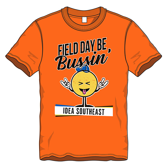 Gildan 5000 100% Preshrunk Cotton T-shirt with White, Black, Blue, Yellow, Pink Artwork.  Artwork is Screenprinted on T-shirts.